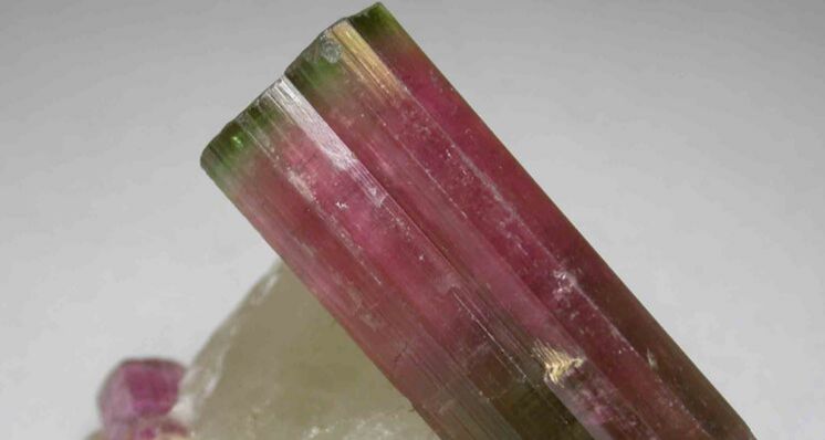 Cover image: A bi-colour tourmaline crystal showing banded colour zones. Image: Pat Daly.